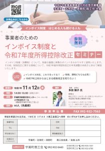 「インボイス制度と令和7年度所得控除改正セミナー」開催のお知らせ